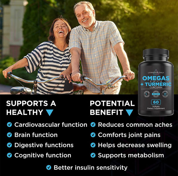 Formulated by Livingood Daily to include essential omega & high-bioavailability of proprietary extracted turmeric to ensure fast absorption & quick action, delivering a wide range of health benefits.